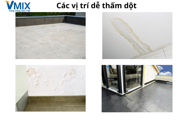 - Công trình xuống cấp theo thời gian: Vết nứt trên sân thượng, mạch ngừng bê tông, cổ ống thoát nước… là điểm yếu dễ bị thấm.
