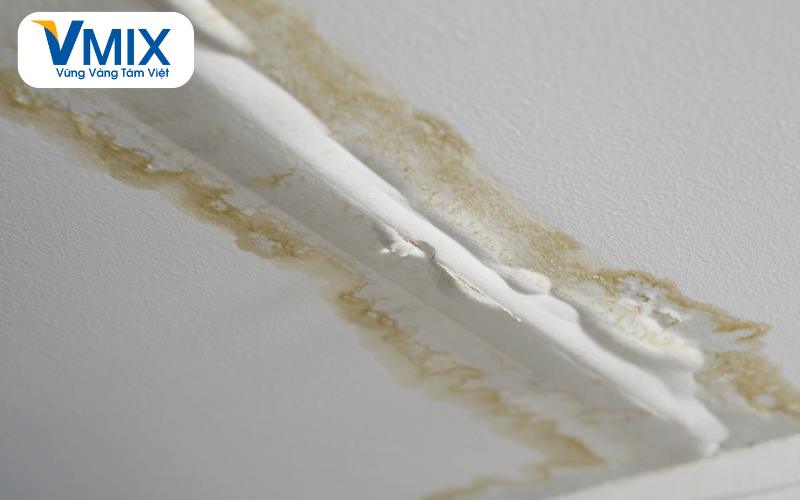 - Trần nhà có vết loang, chảy nước vào ngày mưa