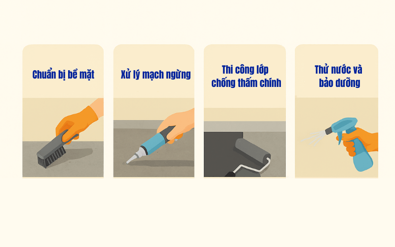 - Giữ ẩm tối thiểu 48 giờ để lớp chống thấm đạt độ bền.