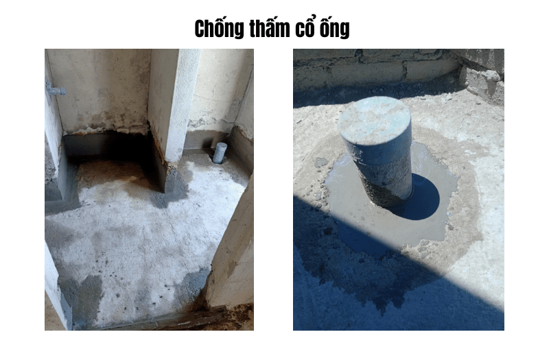 - Quét lớp chống thấm: phủ nhiều lớp vật liệu chống thấm quanh cổ ống.