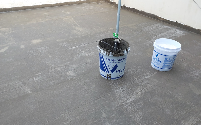 - Dùng con lăn hoặc cọ quét đều lớp thứ nhất lên toàn bộ bề mặt cần chống thấm.